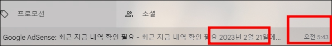 2월 21일에 수익금을 송금했다고 나오지만 사실 한국 시간으로는 2월 22일 새벽 5시 43분에 이메일이 도착했다. 2023년 2월 22일 새벽 5시 40분 구글 애드센스 수입이 입금이 됐다는 구글 이메일이 수신됐다. 보통 오후에 도착할 줄 알았는데 수익이 얼마 되지 않아서 일단 수익이 적은 사람부터 보내는 건지 모르겠다. 하루 1만원도 안되는 수익이 발생해서 블로그를 해야하나 고민 중인데 아무튼 수익이 이번 달에는 일찍 입금이 되어 기분이 좋다. 그 이유는 수익이 입금 후 보통 2일 혹은 3일이 걸리는데 오늘이 수요일이니 금요일 혹은 늦게라도 월요일에 입금이 되기 때문이다.